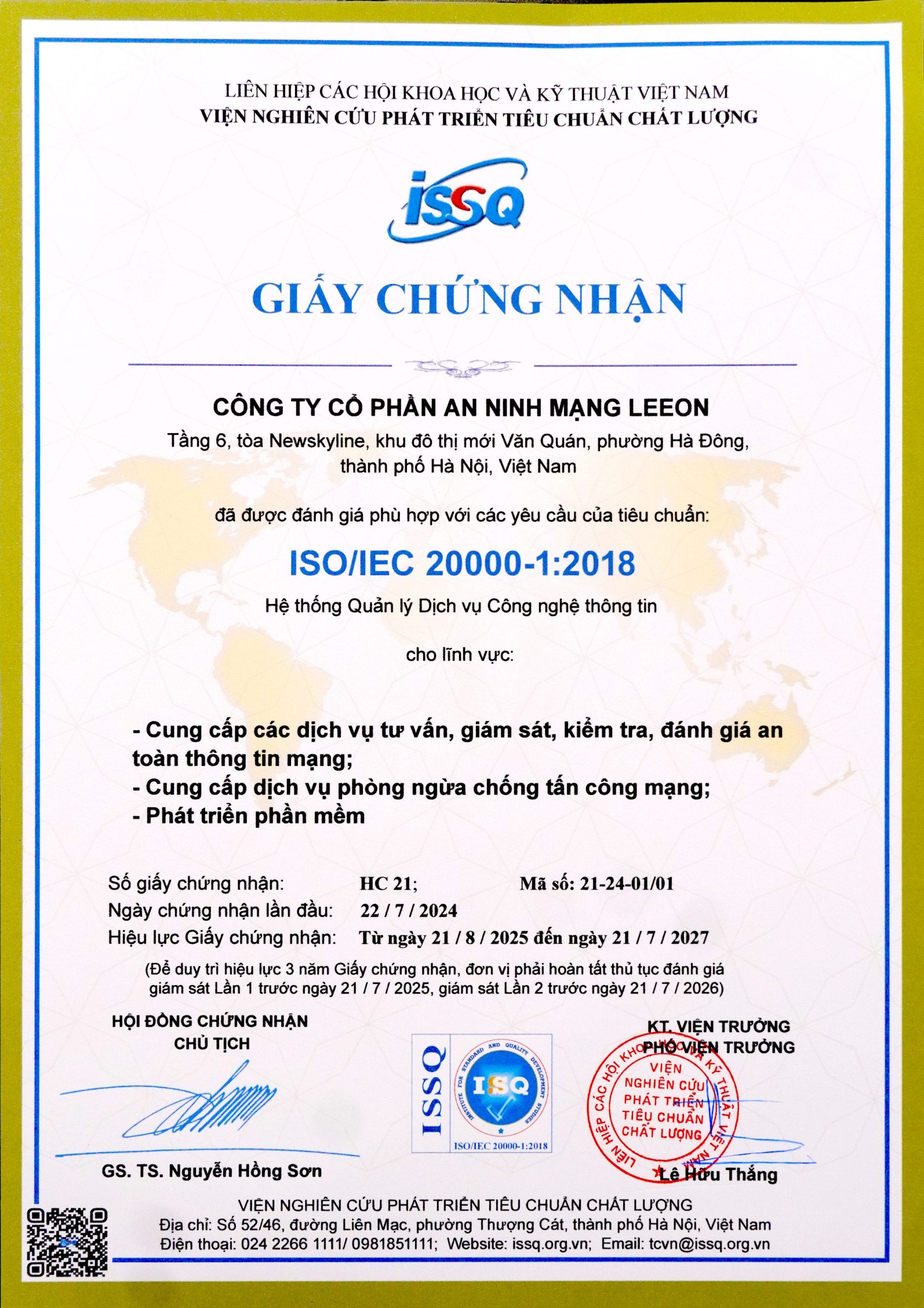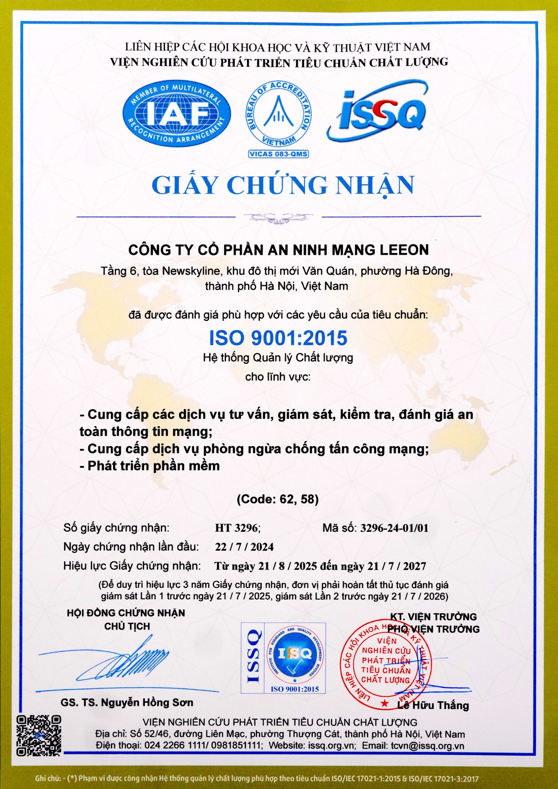 Công ty Cổ Phần An Ninh Mạng Leeon – Leeon Cyber Security là đơn vị trực thuộc hệ sinh thái Công nghệ cao cấp của tập đoàn Leeon. Chúng tôi cung cấp giải pháp an toàn thông tin tới các tổ chức, doanh nghiệp thuộc mọi lĩnh vực cũng như là đối tác tin cậy của các cơ quan nhà nước, tổ chức tập đoàn lớn tại Việt Nam